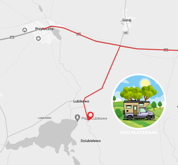 Znajduje się dosłownie na przeciwko zjazdu, który należy wybrać, by udać się do naszego kamperowiska. Jadąc od strony Przytocznej należy skręcić w prawo na skrzyżowaniu by dojechać do „Pod Platanami”